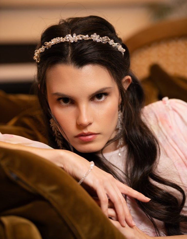 Matériaux utilisés : cristal tchèques, accessoires argent/or, rallonge métallique.