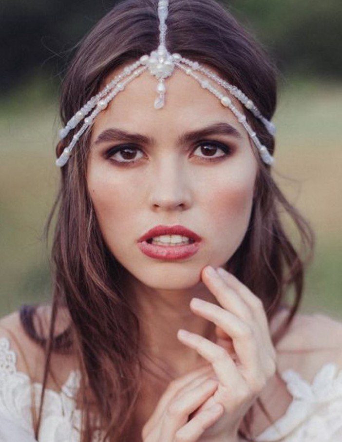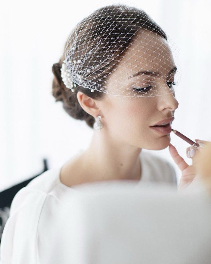 Matériaux utilisés : voile en résille, strass, fil de bijouterie argenté/doré. Pinces à cheveux en métal. Pierres encadrées.